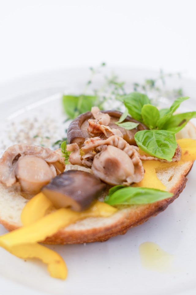青森県陸奥湾のホタテ、宮城県栗原市のしいたけ、宮城県秋保ワイナリーの白ワインを使った東北の旨味あふれるアヒージョです。オリーブオイルに米油をブレンドし、白ワインの酸味を効かせた、濃厚でありながらどんどん箸が進む味わいに仕上げました。